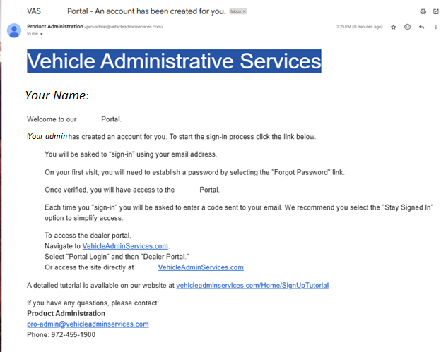 1. You will receive an email from pro-admin@vehicleadminservices.com with some brief instructions